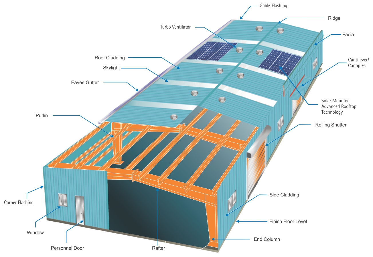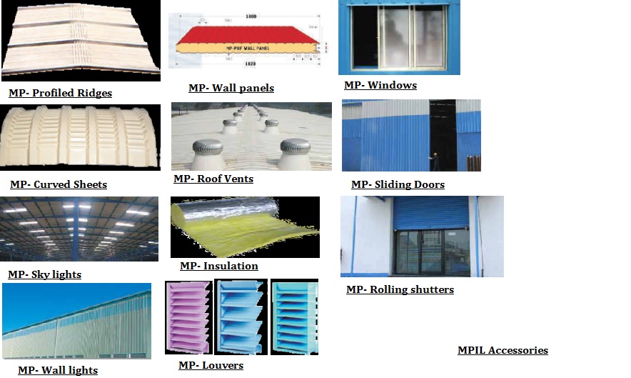 MPIL Pre-Engineered Buildings can be designed with your choice from a variety of attractive and architecturally sound accessory options. Windows, doors, skylights, curved sheets, roof vents, louvers, and insulations are available to suit your requirements.
